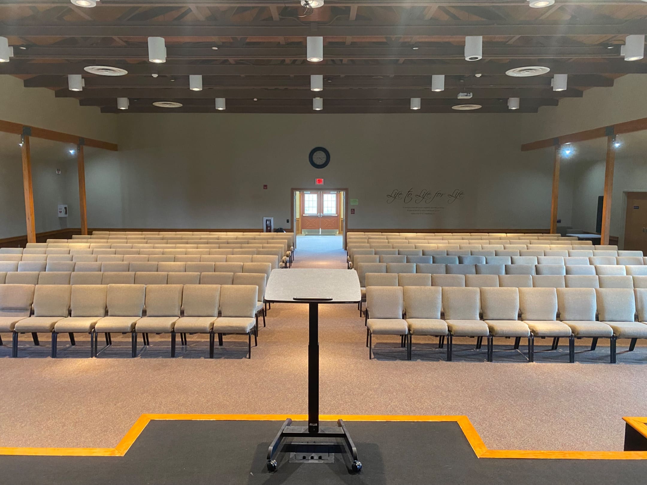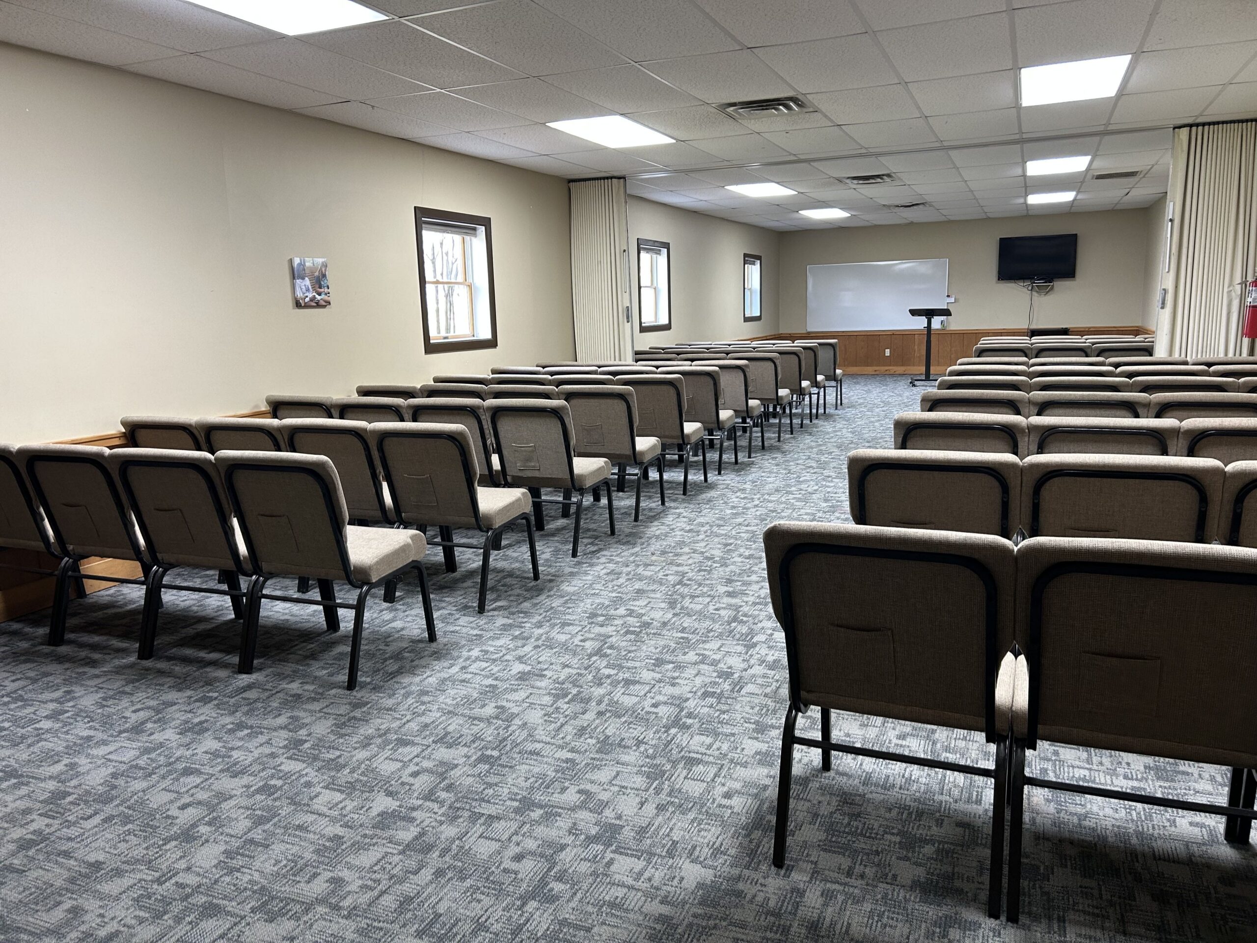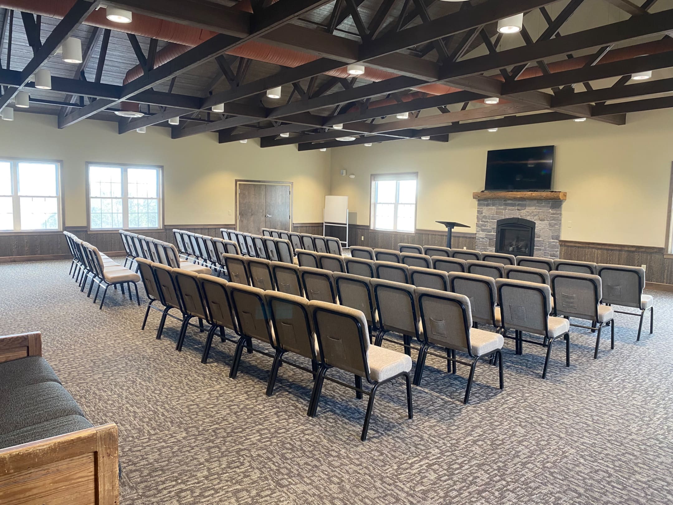 The second-largest meeting room is located in the Shepherds Lodge. Holds up to 140. This room is always reserved for groups of 80 or larger.