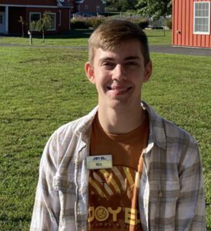 Nic first became involved with Joy El through a friend inviting him to work as a senior counselor during summer 2024. Throughout that summer and some weekends, he worked with campers of all ages and also had opportunities to work in the kitchen as an assistant cook. He’s particularly excited to be able to work with the 4.12 students beyond the summer in his current role on staff.